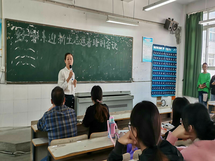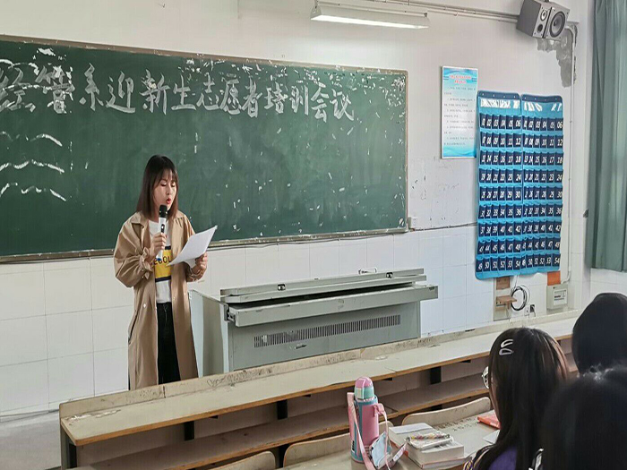 培训会上,欧阳文清首先介绍和部署了今年迎新志愿者整体安排,讲解了新生报到流程并特别提醒了疫情期间迎新志愿服务中的注意事项。她提了四点要求:一是服从安排,保质保量完成工作任务;二是举止文明,展示良好的精神风貌;三是互相配合,充分展现志愿者的综合素养;四是及时沟通,确保迎新工作安全稳定。
