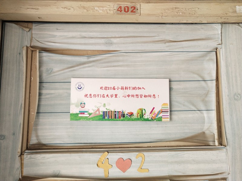 随后,该系部在新生宿舍门上贴上了迎新标语。每一个新生宿舍的门上都被贴上了欢迎新生的标语,“欢迎20届小萌新的加入”字样俏皮可爱,营造了一种温馨的宿舍环境。19级物业管理班杨惊涛看到后,感慨地说道:“这样的标语贴在门上,看上去就很可爱,希望20届的新生到校之后,能够因为这些小标语而觉得惊喜,希望他们在未来的生活中如标语所说的那样,心中所想皆如所愿。”