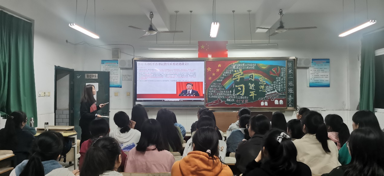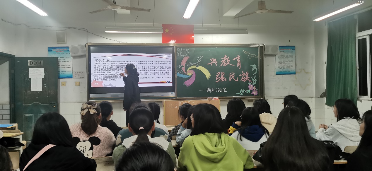 据悉,此次班会系部高度重视,各班负责人认真对待、充分准备对待此次班会。晚7时,此次班会正式开始,各班同学早早到达班级,准备班会。2020级新闻采编与制作一班团支书秦晓雅正在为他们班的同学讲解此次班会内容,“通过《习近平总书记教育重要论述讲义》的学习,同学们更应该明白学习的指导思想和意义,认真学习贯彻‘习近平总书记教育重要论述’的讲话精神,坚定共同为‘两个一百年奋斗目标共同努力’不忘初心,继续前行。此次班会也将督促大家立志筑牢民族复兴的基础工程做奉献的信念,争做新时代中国青年。”