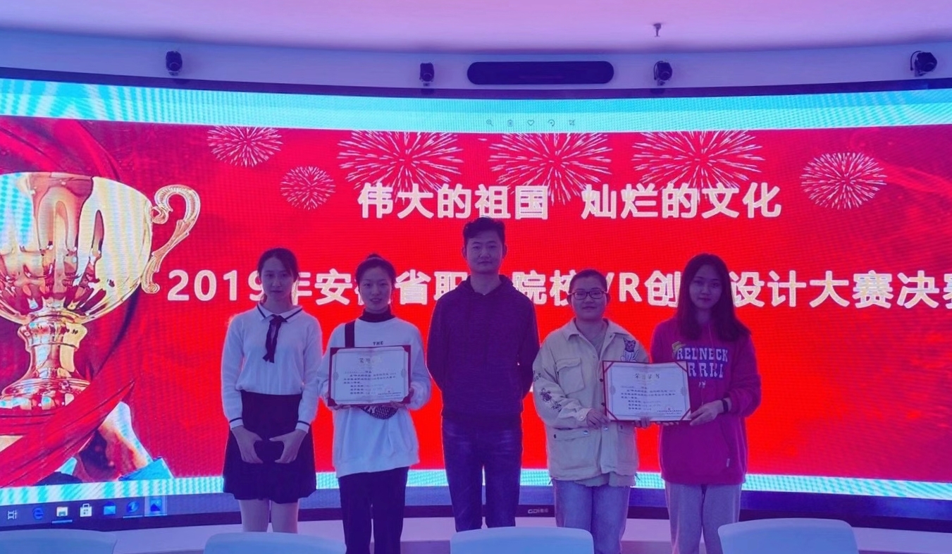 【经管系】在安徽省职业院校VR创意大赛中斩获佳绩 本网讯 10月24日,在滁州职业技术学院举办的“伟大的祖国,灿烂的文化”2019年安徽省职业院校VR创意大赛落下帷幕,来自全省25所职业院校的61件作品参加角逐。经过初赛、决赛的选拔,我校两支参赛队伍表现优异,分别荣获一、二等奖。 其中,来自18级学生江敏、吴俊的团队作品《新中国从这里走来》,以虚拟现实技术还原了渡江战役的真实场景,获得评委一致好评,获得一等奖;来自18级学生张迈豪、徐洁、吴桐羽团队的《采石矶风景区》,呈现了马鞍山采石矶风景区秀丽的自然风光和丰富的历史文化,获得二等奖。