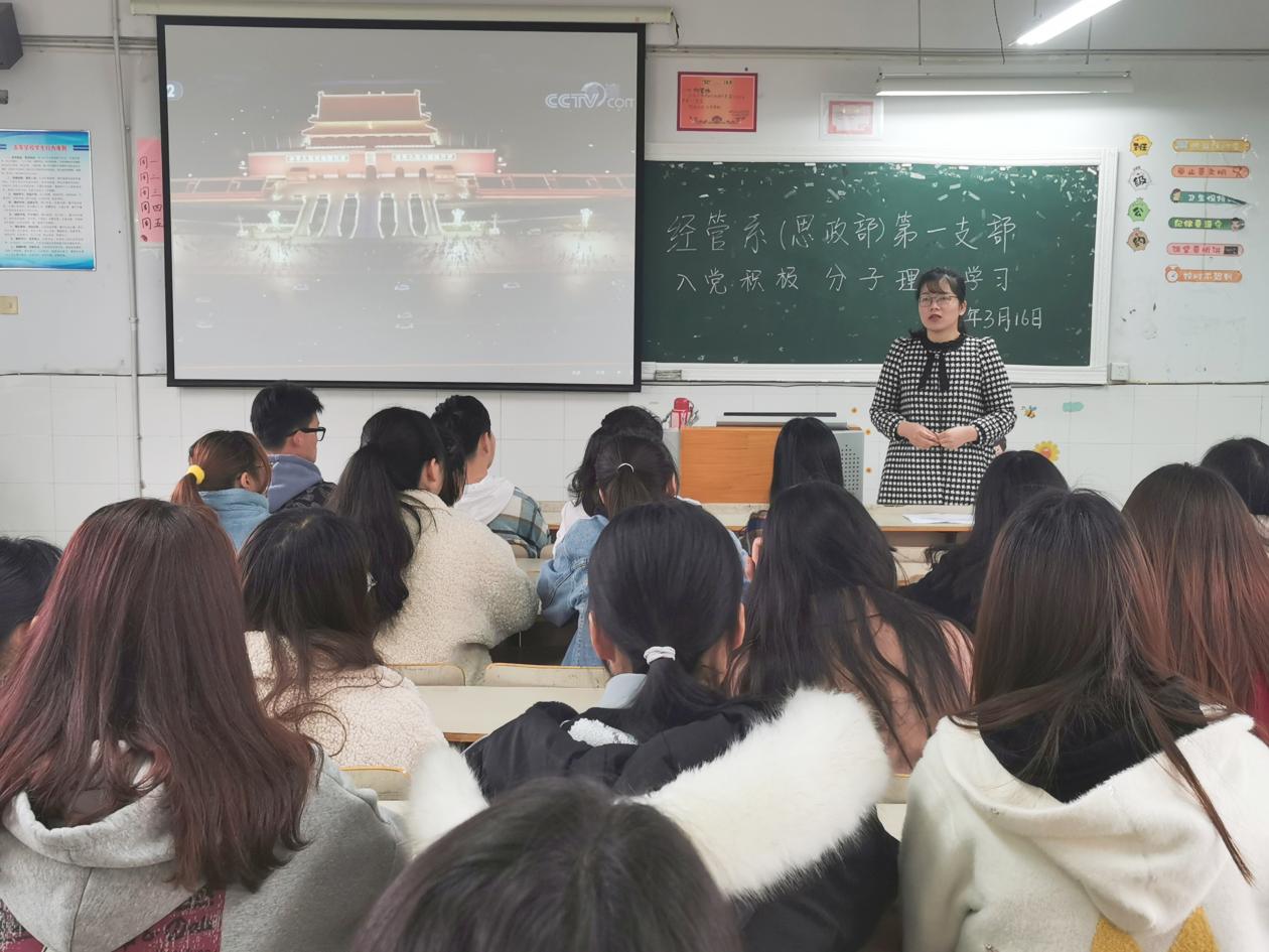 为了扎实做好党员发展工作,加强对入党积极分子的培养和教育,保持党的先进性和纯洁性,3月16日上午,经管系(思政部)第一党支部在博学楼306教室开展了新学期第一次入党积极分子理论学习活动。