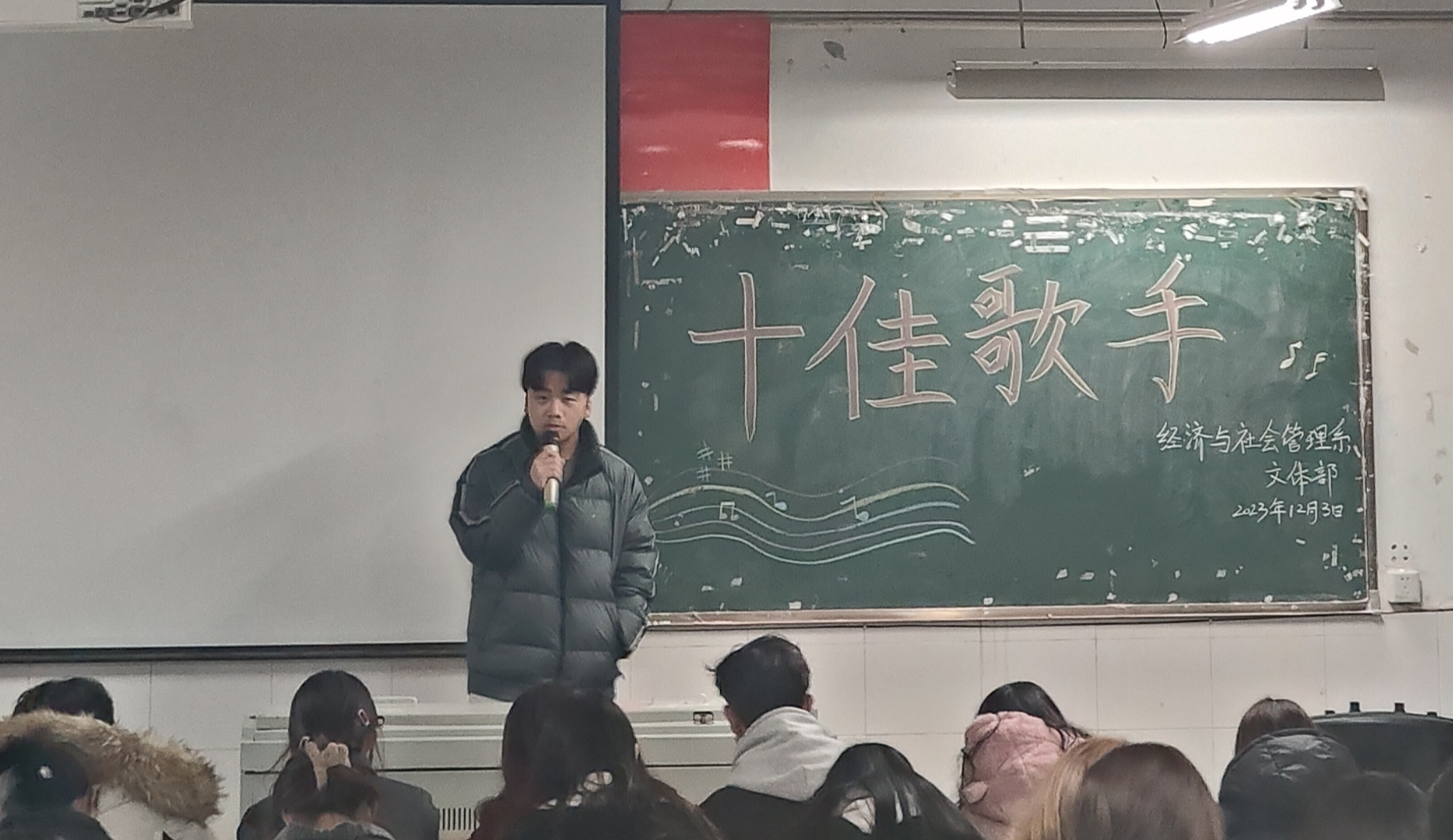 【向阳而声 唱享未来】经管系积极举办校园十佳歌手系部选拔赛 本网讯 为丰富学生的校园文化生活,营造活跃、和谐的校园文化氛围,展现当代大学生积极向上的青春风采,12月3日晚6时30分,经济与社会管理系积极举办校园十佳歌手系部选拔赛。