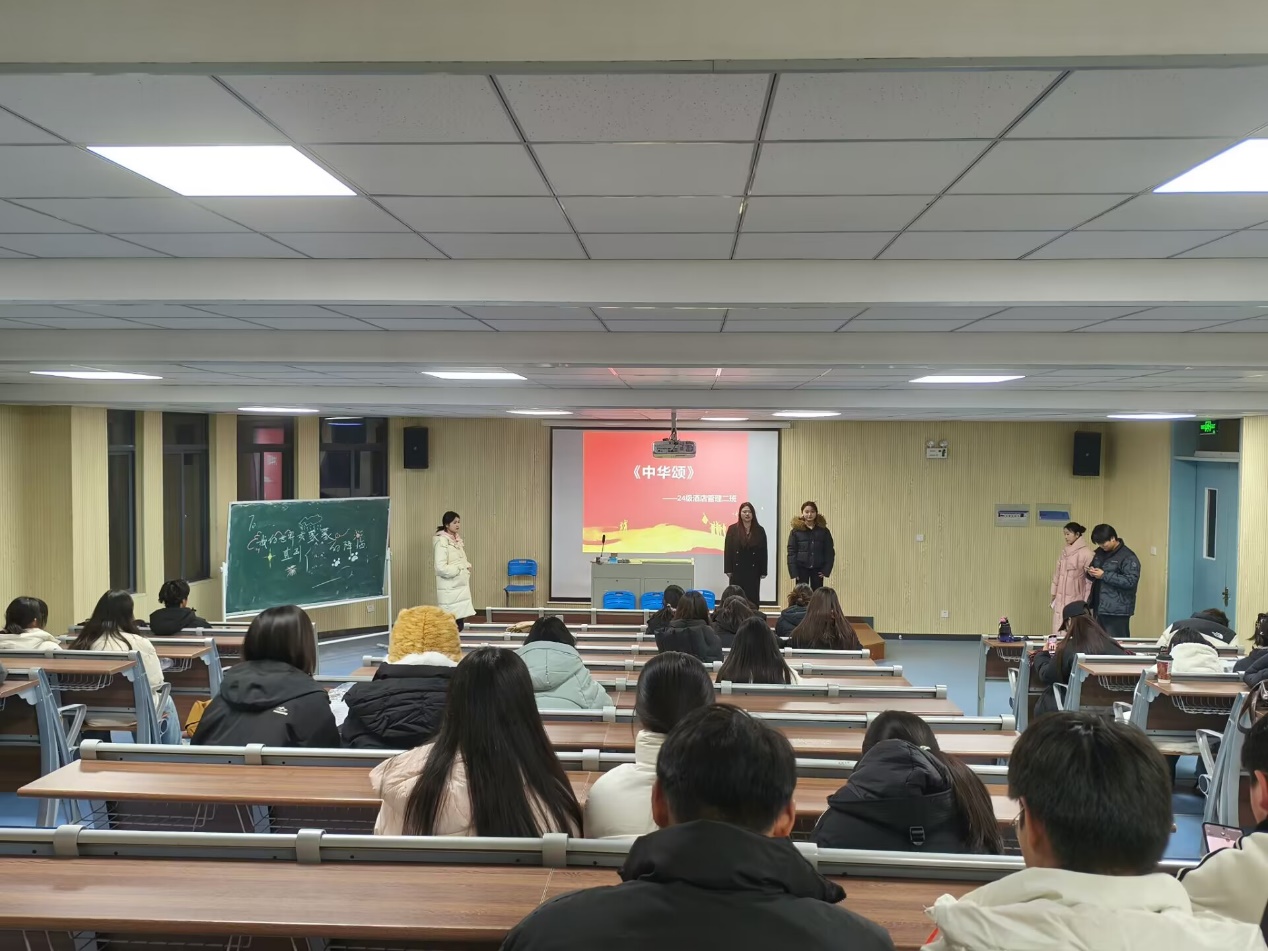 “有人问家在哪,回答向东方走,有个美丽的地方叫中华。”2024级酒店管理与数字化运营(2)班的郑慧怡,王萍萍带来《中华颂》,此诗歌颂了中华民族的辉煌历史和卓越文化,诗中对中华民族的传统文化、历史人物和各个时期的重大事件的描绘,展现了中华民族的伟大和辉煌,他们以富有情感的朗诵表达了对祖国的爱与依恋。 选手们用最饱满的热情朗诵着自己的原创作品,诉说着祖国的曲折,激昂地讲说着祖国的强大,每一次演讲结束都伴随着经久不息的掌声。