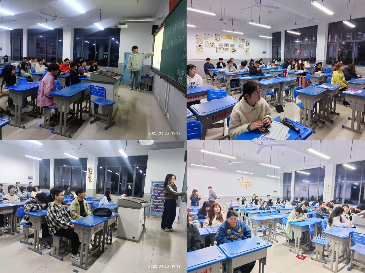 为助力学校升本工作顺利推进,3月23日晚七点,经济与管理学院组织各班级开展“升本知识大学习”主题班会活动。 班会上,各班班委通过PPT展示学校在升本道路上已经取得的阶段性成果以及面临的挑战,并从教学改革、学生发展、校园文化等方面展开介绍,使同学们深入了解了学校升本工作的整体情况。