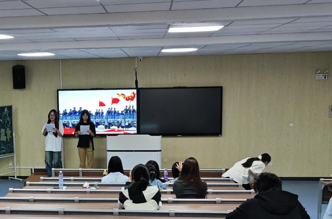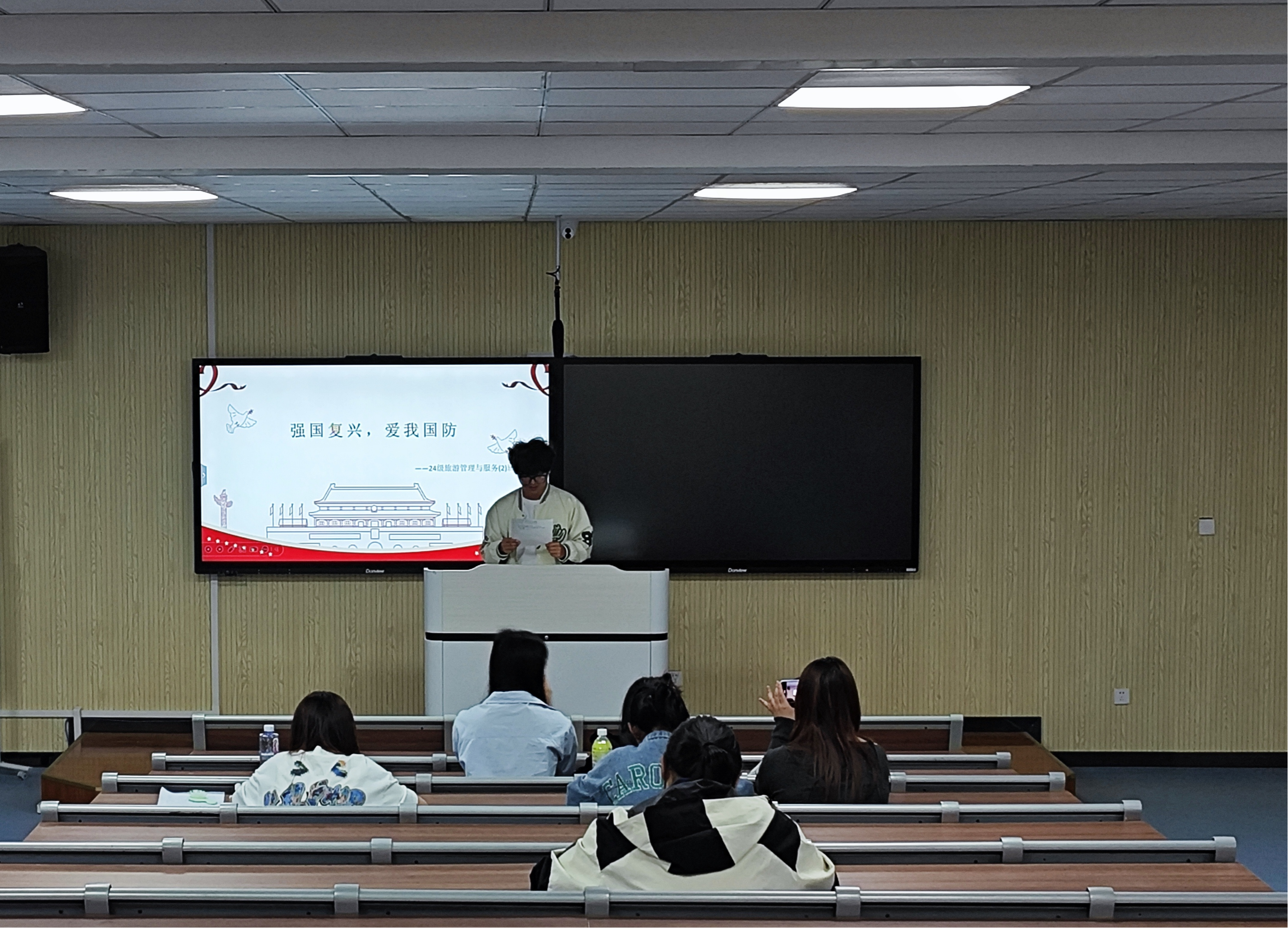 2024级酒店管理(1)班的许子寒和陆可以饱满的激情围绕主题展开精彩演讲:“国防是民族尊严的坚强后盾,历史一次次告诉我们‘落后就要挨打’的深刻教训。”两位同学目光坚定、语调铿锵,对新时代的青年发出号召,现场观众无不被他们真挚的情感和昂扬的斗志深深感染。