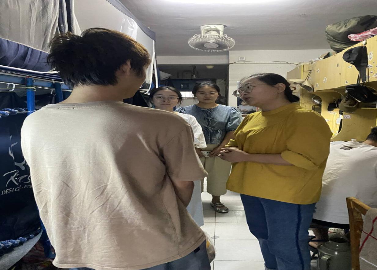 10月11日下午,经济与管理学院党委书记刘明娟率辅导员一行深入2023级学生宿舍,开展“百千万”师生联系服务专项行动之“暖心走访”,把学校党委的关怀精准送到建档立卡学生床头。 “宿舍灯管亮不亮?食堂饭菜贵不贵?”每走进一间宿舍,刘明娟都先看下宿舍的环境、试试水龙头,再掀开床帘查看被褥厚度。一句句拉家常式的询问,让现场气氛瞬间升温。
