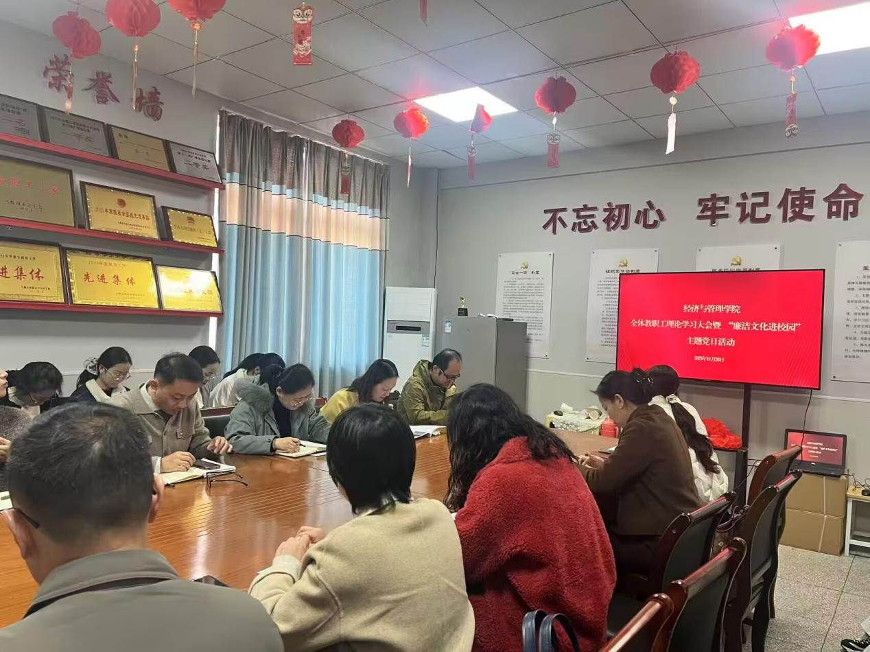 2025年11月26日,经济与管理学院党总支召开全体党员大会,专题学习党的二十届四中全会精神。会议由党总支书记刘明娟主持,全体党员参加会议。 会上,全体党员围绕习近平总书记在党的二十届四中全会上的重要讲话和《中共中央关于制定国民经济和社会发展第十五个五年规划的建议》《中国共产党第二十届中央委员会第四次全体会议公报》等认真开展学习。随后,大家围绕学习贯彻全会精神结合工作实际开展交流研讨,谈思想认识、实践感悟、工作打算,并一致表示将立足本职岗位、担当作为,把学习成果转化为教书育人和科研服务的实际行动。