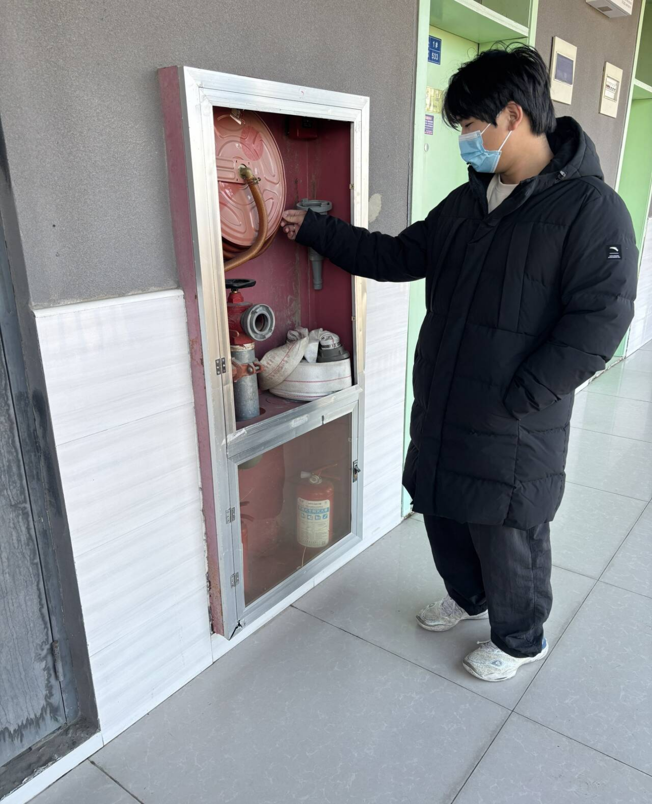 检查中,学生会干事逐一查看了宿舍区域的消防设施:确认应急照明灯、疏散指示标志是否正常启用,消防栓、灭火器等器材是否完好可用;同时重点核查宿舍内用电安全,严查违规使用大功率电器、私拉乱接电线等行为,提醒同学们规范用电。